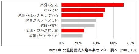 塩を購入する際、「品質」「味わい」「産地・製法」への高いニーズが伺えます。