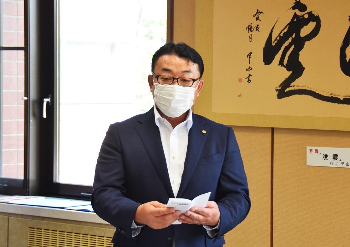 「今月の大雨による被害を見てもわかるように、住民の安全・安心な暮らしが脅かされることのないよう、行政としてあらゆる状況に対応していかなければなりません。その上で、今回の締結は、地域の抱える課題が解決へ向かい、住民がより安心して暮らせるまちづくりに大いに寄与するものと思っております。寄贈いただいたストップマークは、歩行者の一時停止を促す非常に効果的なものであり、町としての交通事故防止に活用させていいただきます。」