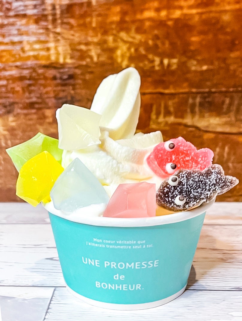 「みどり製菓」琥珀糖ソフトクリーム(1人前)550円