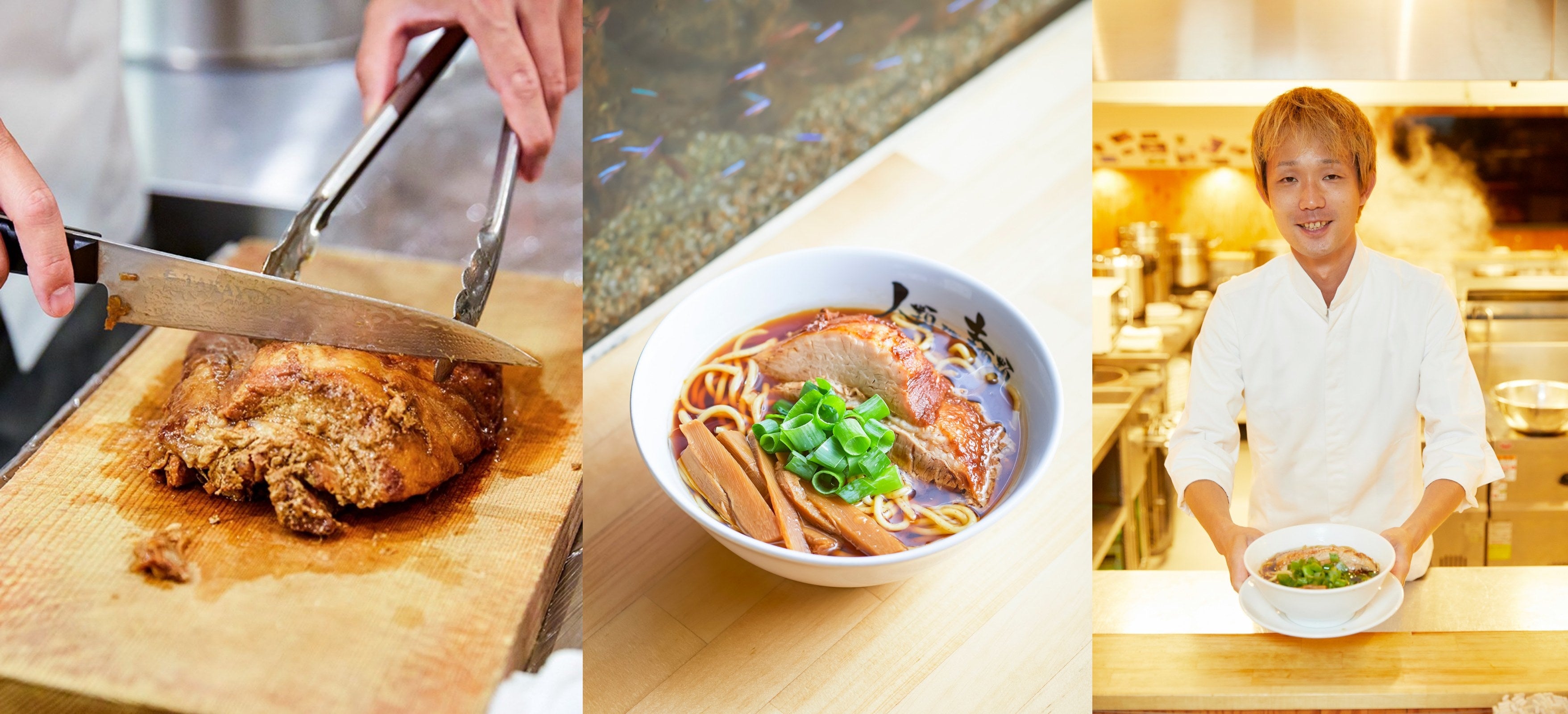 大阪の人気ラーメン店「人類みな麺類」が、甘みのある脂身とやわらかい肉質で有名な大阪産豚肉“なにわポーク”を使ったラーメンで阪神梅田本店初登場!「人類みな麺類」の特徴であるホロホロの極厚チャーシューを、なにわポークのバラ肉で仕込みました。また創業者の松村貴大さんが、修行していた東大阪の高井田ラーメンをリスペクト!高井田ラーメンと同様に、鶏ガラと昆布を使った風味ある醤油スープが、もちもちの麺と絡んでどんどん進むおいしさ!さらに、スープに大阪産(もん)の鯛の骨をだしに使った、「人類みな麺類」初の鯛出汁のラーメンもお楽しみに!
