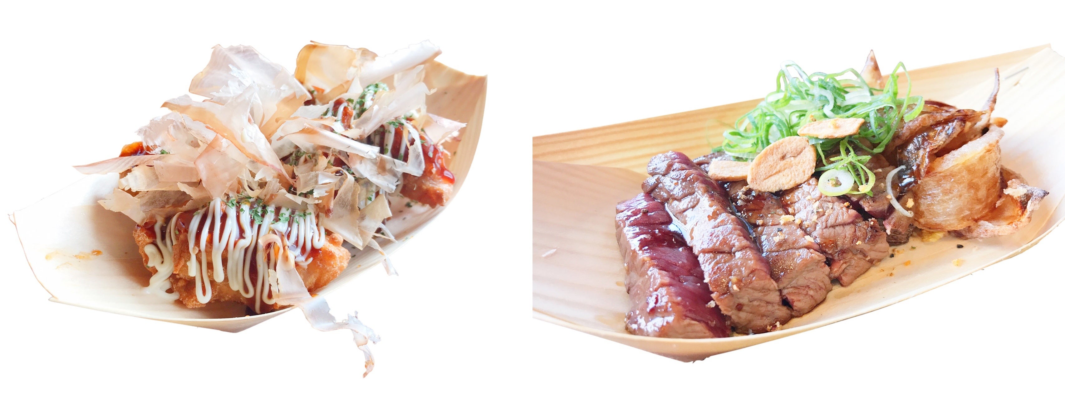 箕面ビールが隠し味のたこ焼き風唐揚げと、泉州玉ねぎと河内ワインが味の決め手のステーキ