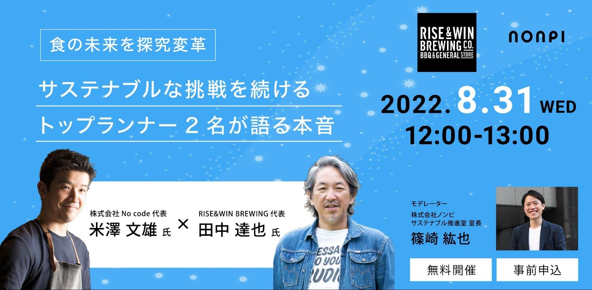 そこで今回は食の分野でサステナブルな挑戦を続けるトップランナー2名をゲストにお呼びし、ご自身のこれまでの実体験を交えながら、これから求められる「食 x サステナビリティ」のあり方について、ディスカッションしていきます。