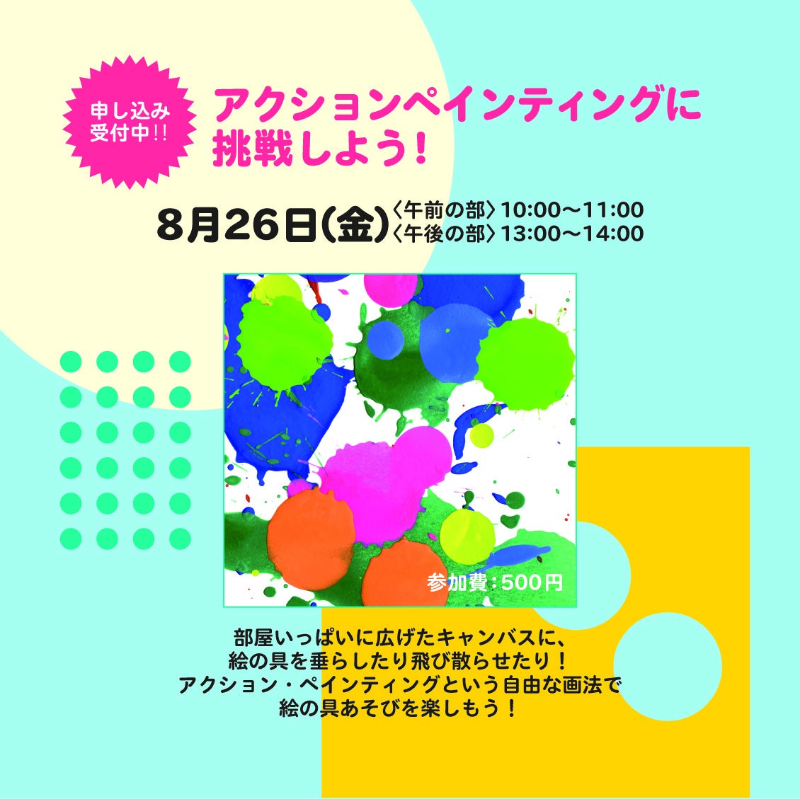 旧区長室を使って、部屋いっぱいに広げたキャンバスに、絵の具を垂らしたり飛び散らせてアート作品をつくります。汚れを気にせず子どもたちの感性を発散させられる貴重な機会になるはずです。