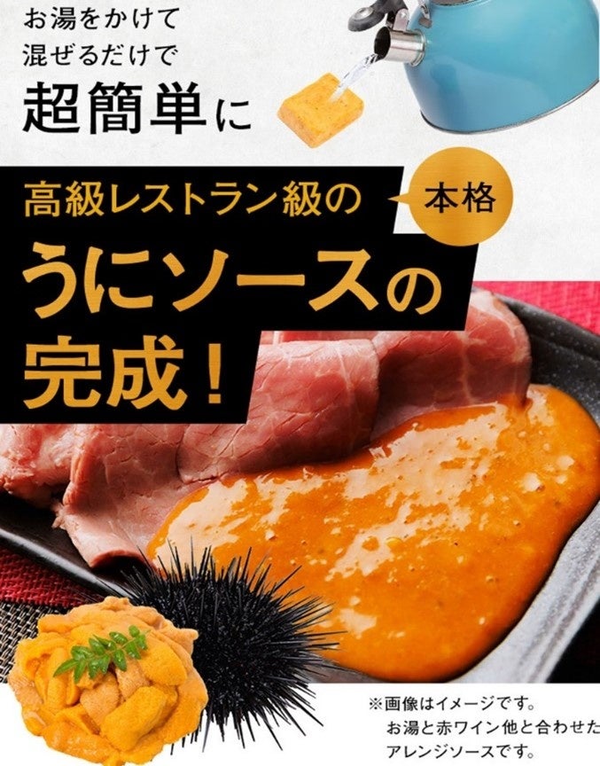 「うにクリーム」は、お湯を注ぐだけで超簡単にレストラン級のウニクリームに早変わりし、多彩なウニ料理に変幻自在な、料理用ソースの素です。