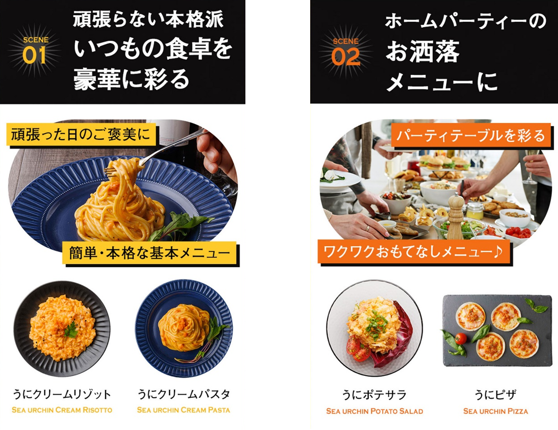 「うにクリーム」は、調理の簡単さだけでなく、様々なシーンに向けたアレンジも楽しんで頂ける商品です。