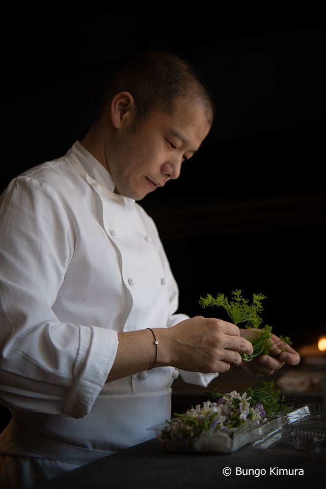 1977年生まれ、北海道出身。2000年に渡仏し、「アストランス」「ピエール・ガニエール」やスペインの「ムガリッツ」など海外の星付きレストランで腕を磨き、2009年パリ2区で「Passage 53」をオープン。2011年に日本人シェフとして初めて二つ星獲得、以降8年連続二つ星を獲得し続け、2019年新たな挑戦の為に閉店。