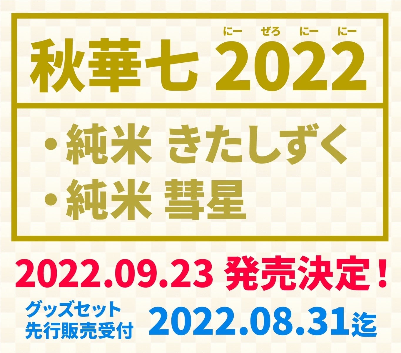 弊社所属の高田秋(たかだ・しゅう/30)が昨年初めてプロデュースした日本酒「秋華七-AKIHANA-」の第2段となる「秋華七-AKIHANA-2022 純米『彗星・きたしずく』」の2種類を自身の誕生日である9月23日に販売することを発表。グッズセットの先行販売が8月31日までとなります。