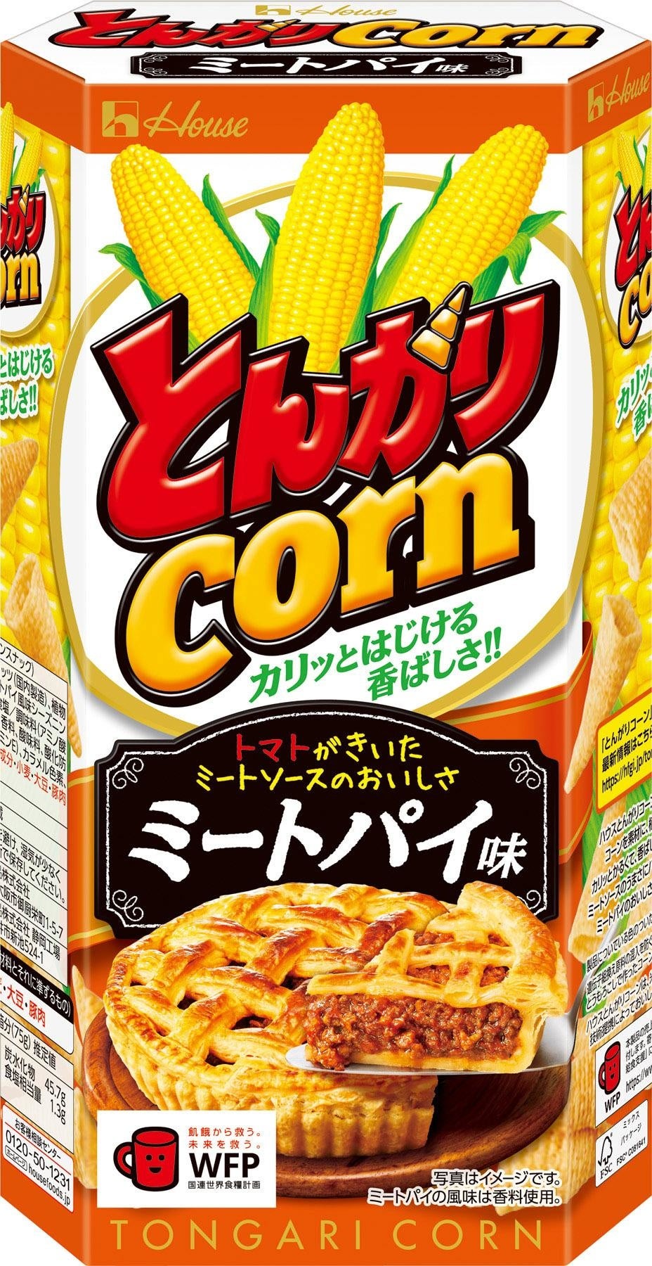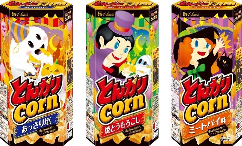 ハウス食品は、「とんがりコーン」シリーズの新アイテムとなる、「とんがりコーン」<ミートパイ味>を、8月22日から全国で発売します。またハロウィーンの季節を盛り上げる、「とんがりコーン」<あっさり塩><焼とうもろこし><ミートパイ味>の“ハロウィーンパッケージ”を、同日より数量・期間限定で発売します。