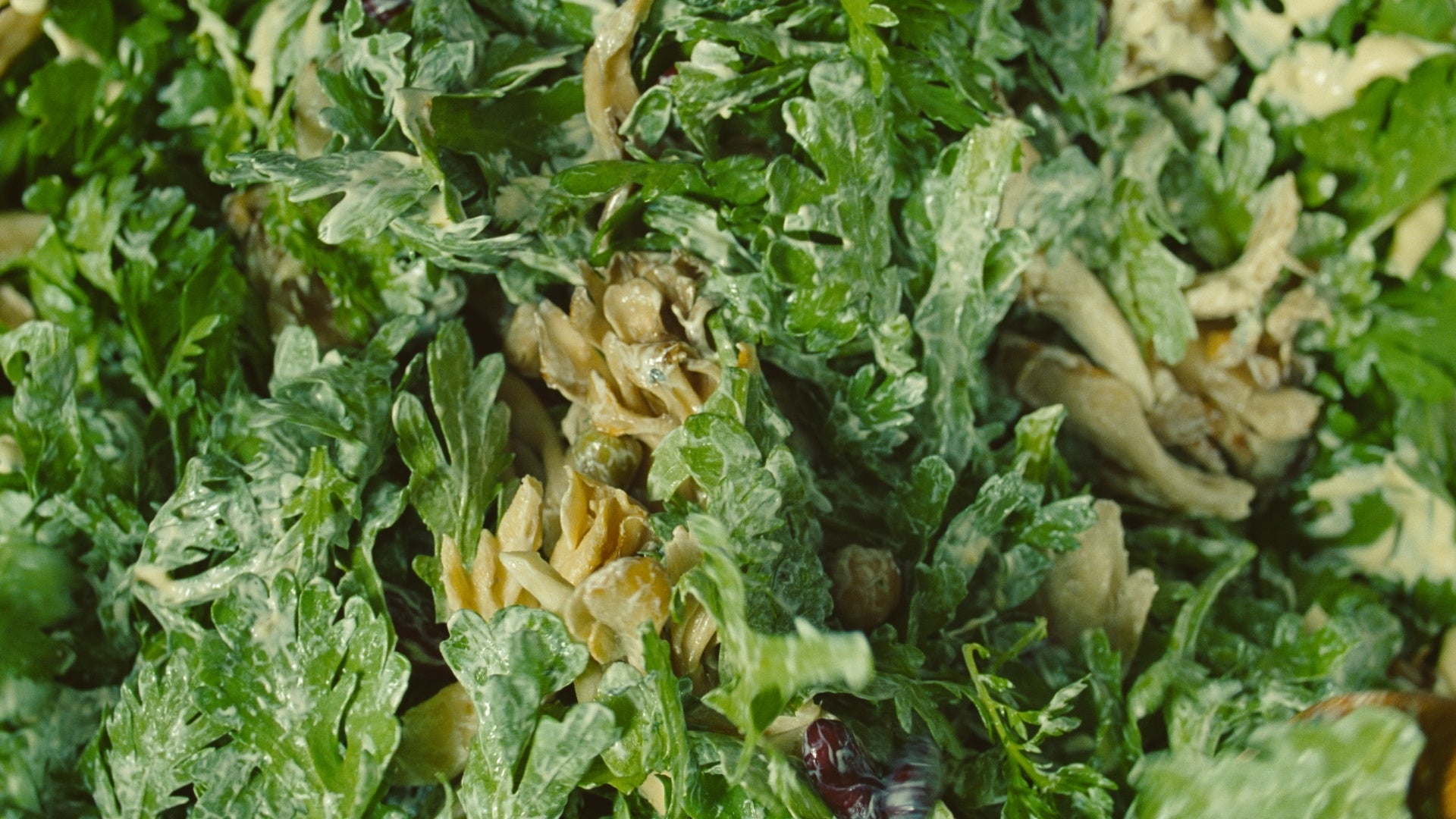 舞茸と春菊とミックスビーンズのデリサラダに、