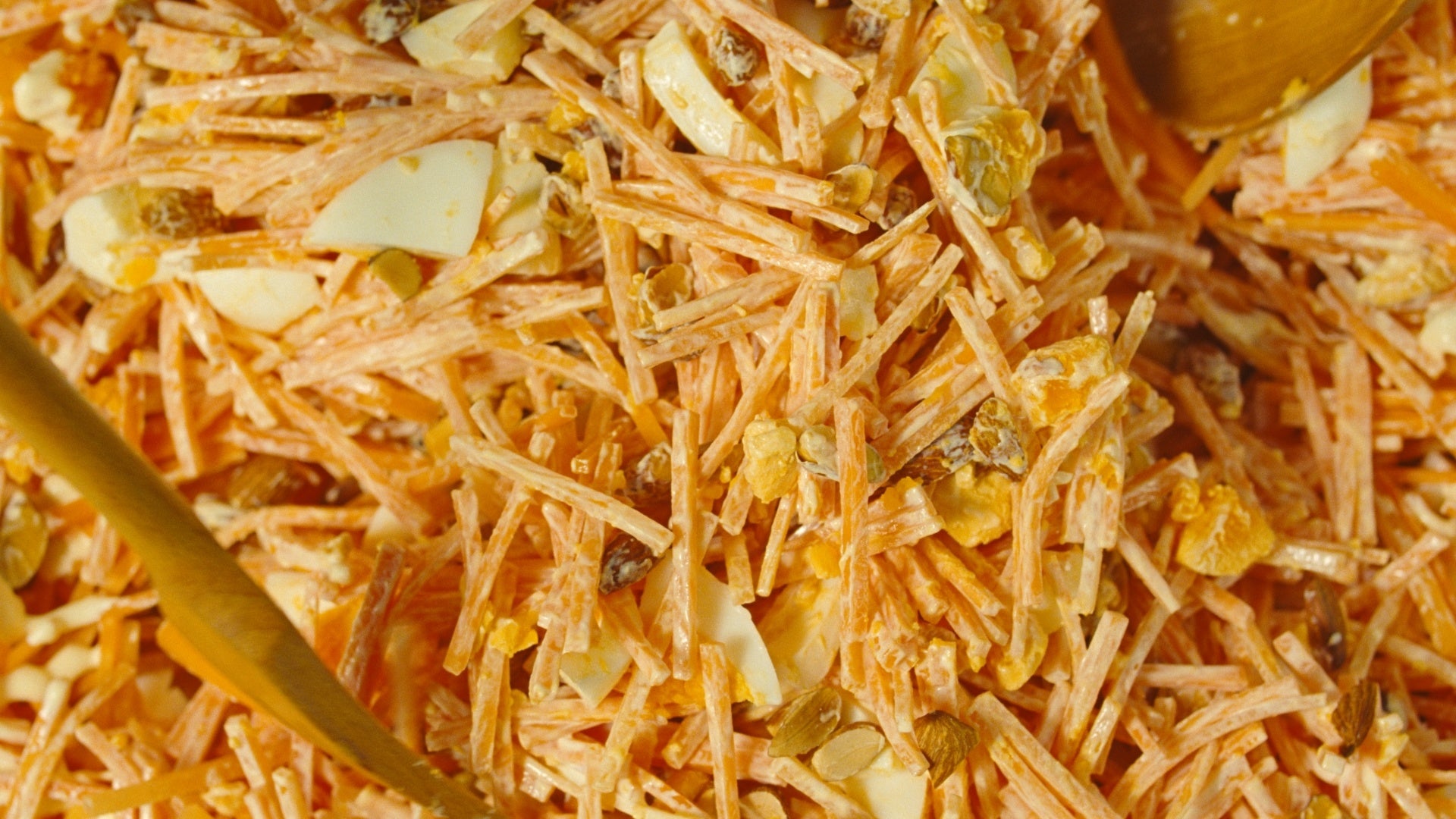 今回は、キユーピーハーフと野菜であえて作る「デリサラダ」を、にんじん、舞茸、さつまいもなどの秋の食材で提案します。独自のマイクロエマルション製法により、「あえたときに野菜から出る水分を包み込むため、サラダが水っぽくなりにくい」という、キユーピーハーフの特徴を生かしたメニューで商品の魅力を訴求します。