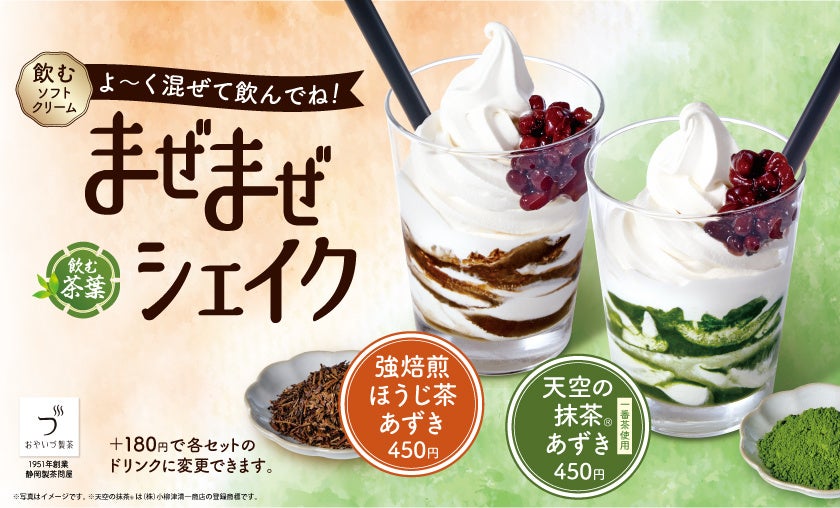 ウェンディーズ・ジャパン株式会社とファーストキッチン株式会社(代表取締役:紫関修 所在地:東京都新宿区)では、8月25日(木)より、ウェンディーズ・ファーストキッチンとファーストキッチン(一部店舗を除く)にて、健康的なお茶を使った贅沢な “飲むソフトクリーム”まぜまぜシェイクを発売します。