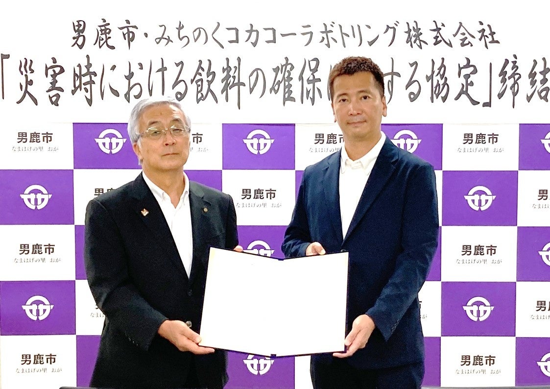 このたび、みちのくコカ・コーラボトリング株式会社(本社: 岩手県盛岡市、代表取締役社長: 谷村 広和)は、秋田県男鹿市(市長: 菅原 広二)との間で、「災害時における飲料の確保に関する協定」を締結することとし、8月18日(木)に締結式を開催いたしました。