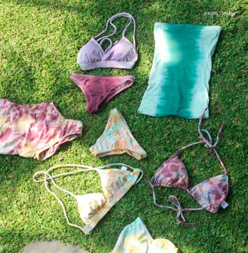 水着素材を使用した“しぼり染め”ワークショップです。世界にひとつしかないリボンや巾着を作ることができます。