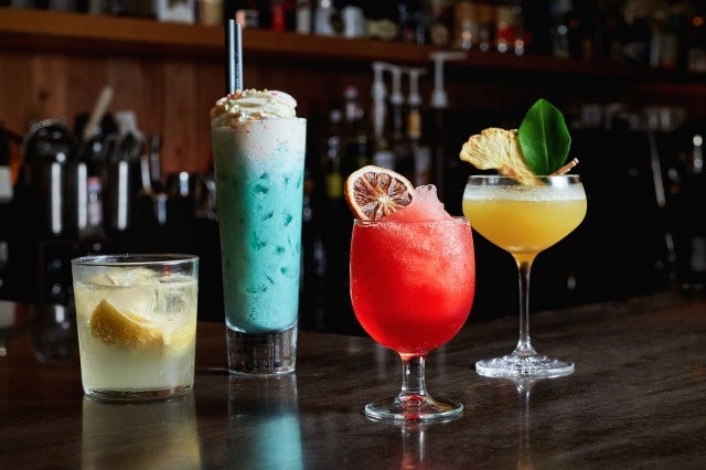 (画像内右から)パイナップルとライムの味わい「Khoanom Matador」、スイカジュースを使用した「Sun of The Beach」、見た目にも涼しいクリームソーダを表現した「Dirty Cream Soda」、レモングラスの爽やかなフレーバーが楽しめる「8Sour」。