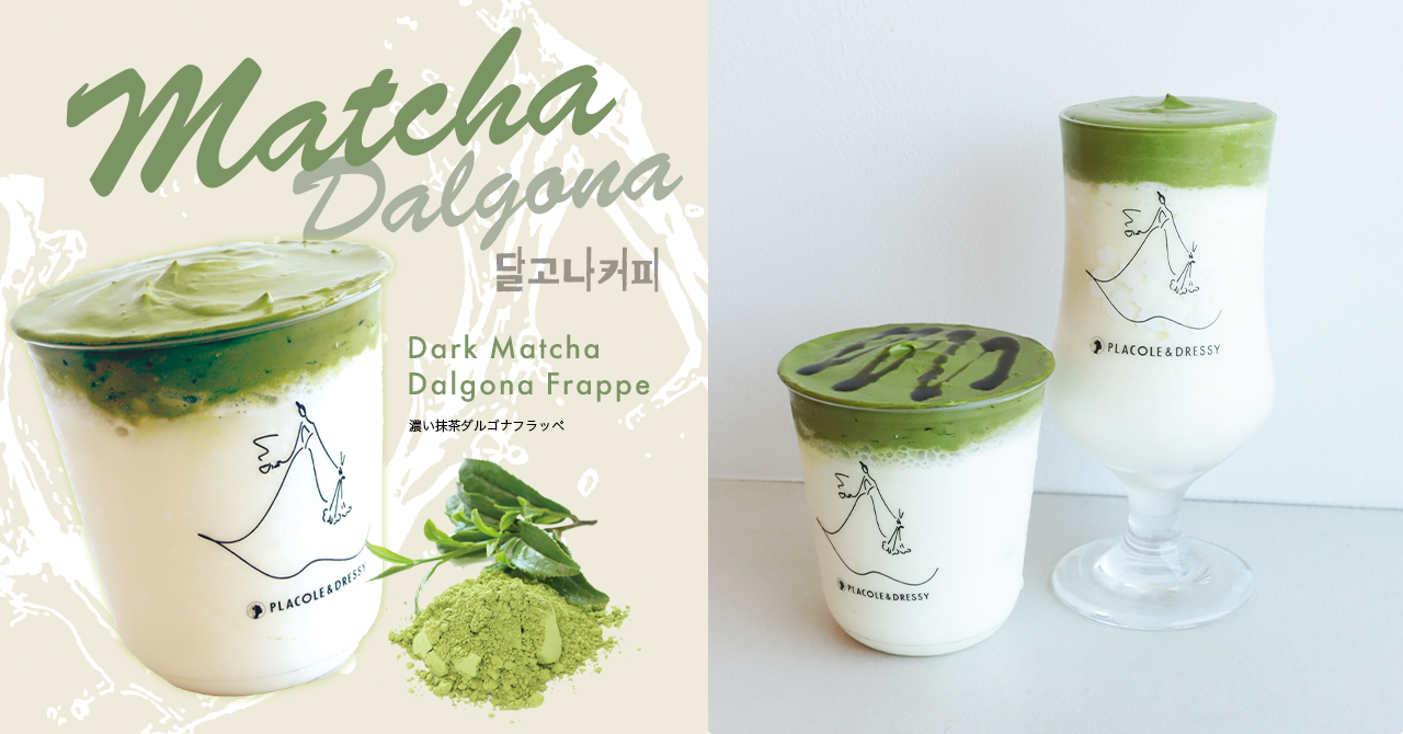『個性が煌めく魔法の言葉』 “100人の人生に100通りに煌めく魔法をかける”をテーマに創設された古都鎌倉発のラグジュアリーブランド、PLACOLE&DRESSY(プラコレ&ドレシー)がプロデュースするカフェ&バー、『お花とドレスと紅茶のお店 DRESSY ROOM&Tea』から8月15日より新作フラッペが登場。大人気のシルキィピーチフラッペとバナナフラッペに次ぐ第三弾は抹茶好きにはたまらない、『濃い抹茶ダルゴナフラッペ』。