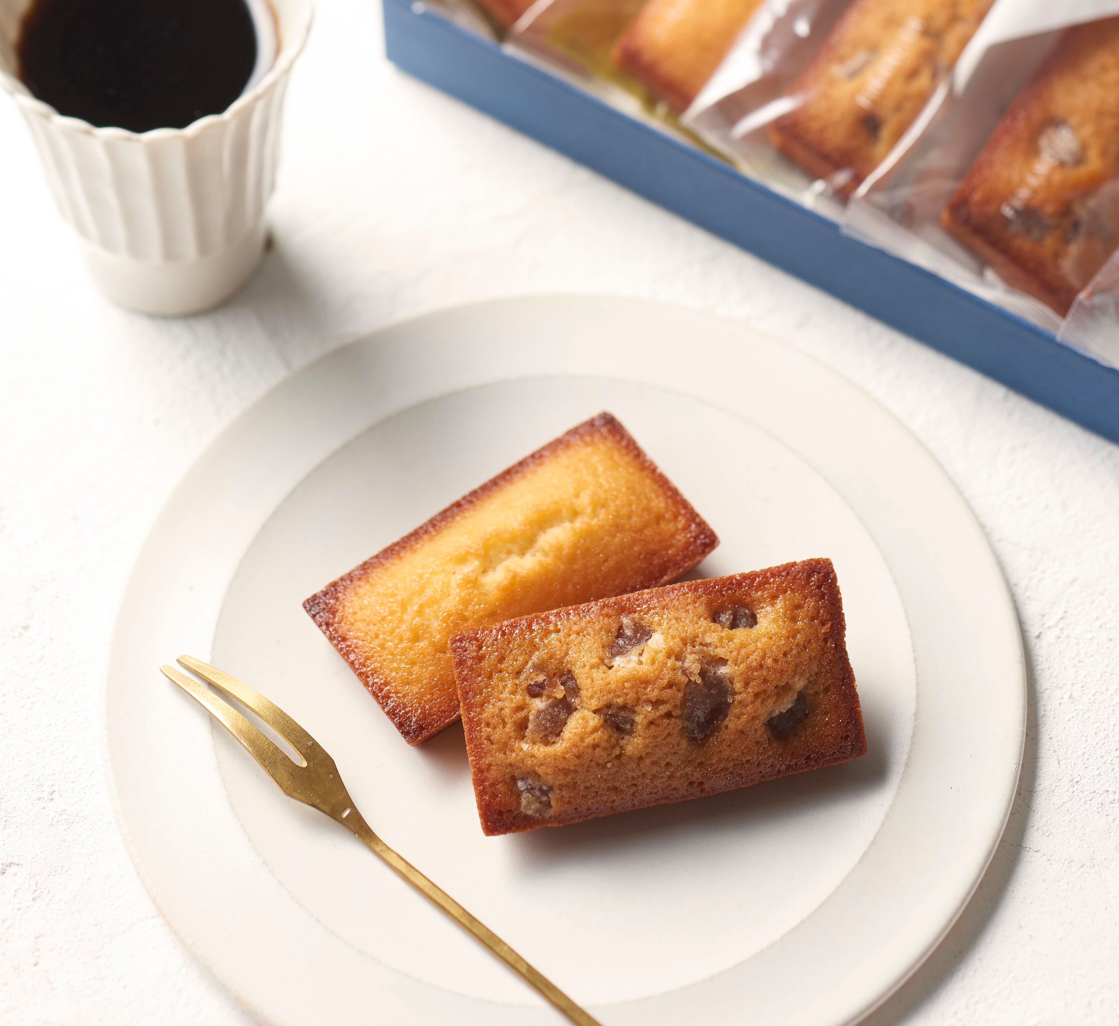 選び抜いた素材で丁寧に、しっとり焼き上げたフィナンシェ。上品な味わいの ” 和三盆 ”と季節の味わいの ” マロン ”を詰め合わせました。