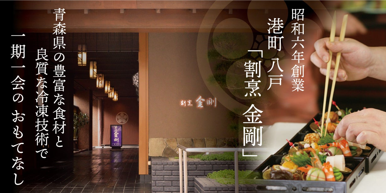 現在、株式会社金剛では、旗艦店である割烹金剛を筆頭に八戸市内に9店舗、仙台に1店舗、東京に2店舗の飲食事業を展開しております。さまざまな業態の飲食店や仕出し事業の運営、お弁当・お惣菜・パン・菓子・加工食品の開発販売など多岐にわたり手掛けておりますが、共通して大切にしていることは 『食を通じて、一人でも多くのお客様へ少しでも大きな「幸福」を感じて頂きたい』という想いです。八戸という地域で、”食”と真剣に向き合いながら、魅力あるサービスを創造し次の100周年を迎えられるよう社員一丸となって取り組んでおります。