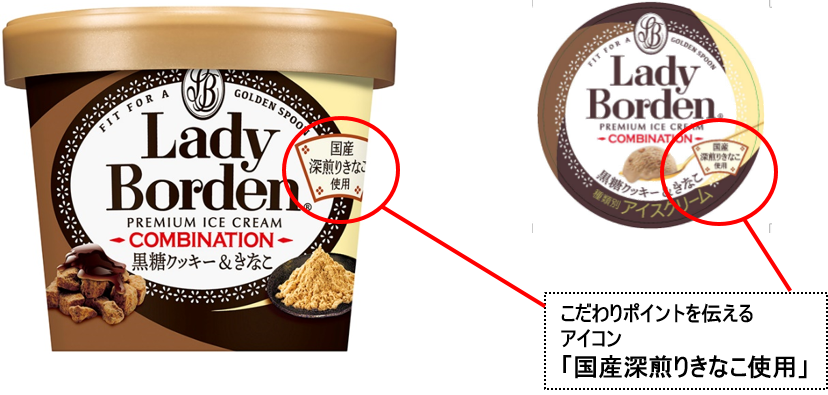 - 組み合わせているものが何かわかるように側面両端に黒糖ときなこのシズルを配置。