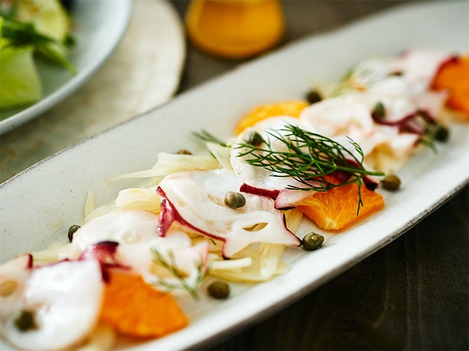 タコとフェンネル、オレンジのカルパッチョ