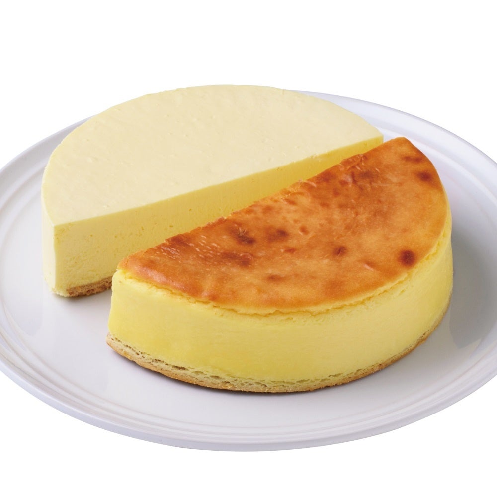 濃厚な卵とニュージーランド産のクリームチーズにサワークリームを混ぜ込み、コクがありながらもさっぱりとした味わいをお愉しみいただけるプレミアムレアチーズと、ニュージーランド産のクリームチーズをふんだんに使い、卵とチーズのコクの深み、濃厚さを感じられる風味豊かなしっとり食感のベイクドチーズケーキのベイクドロワイヤル。