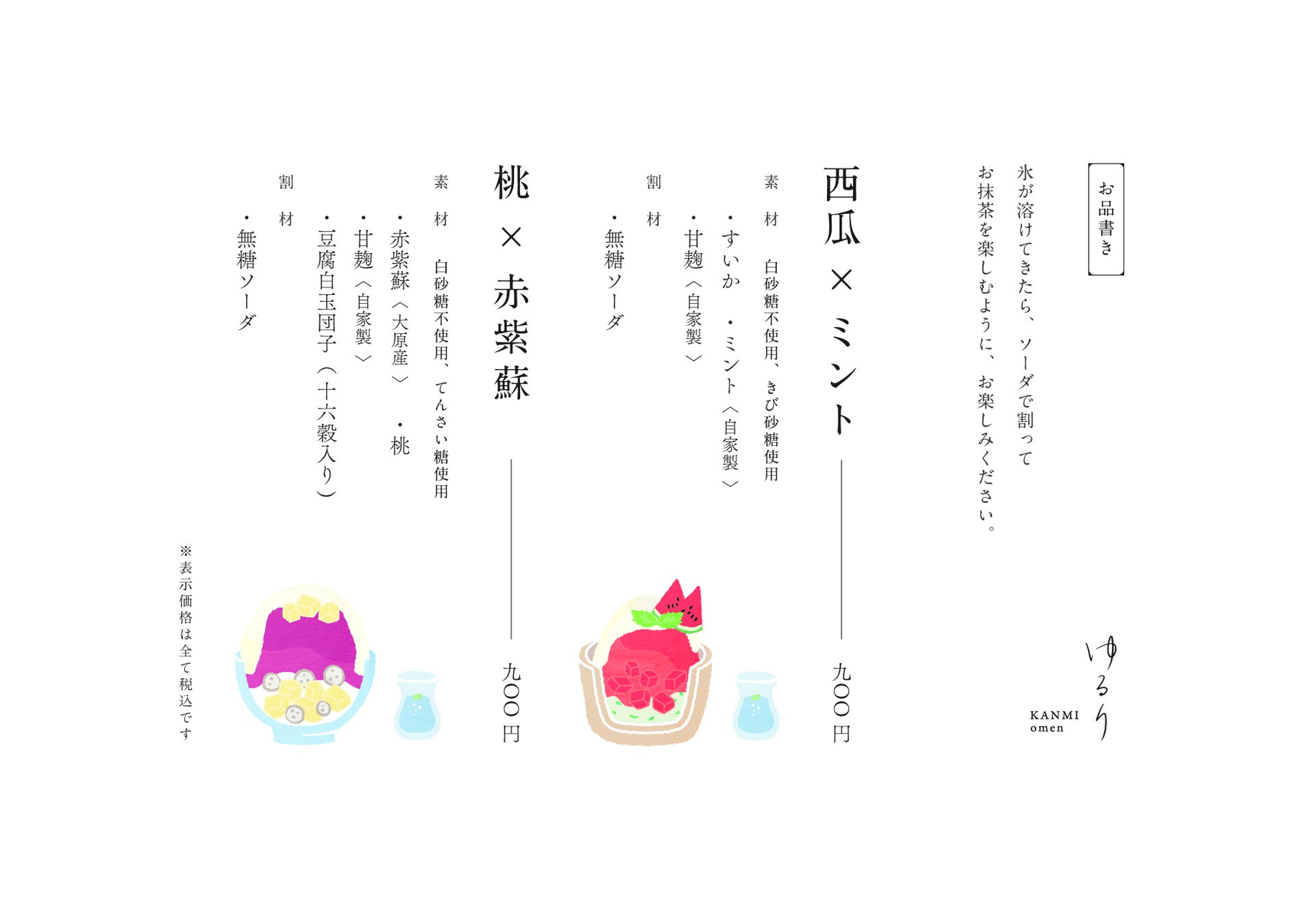 「桃と赤紫蘇のかき氷」と「西瓜とミントのかき氷」の2種類。
