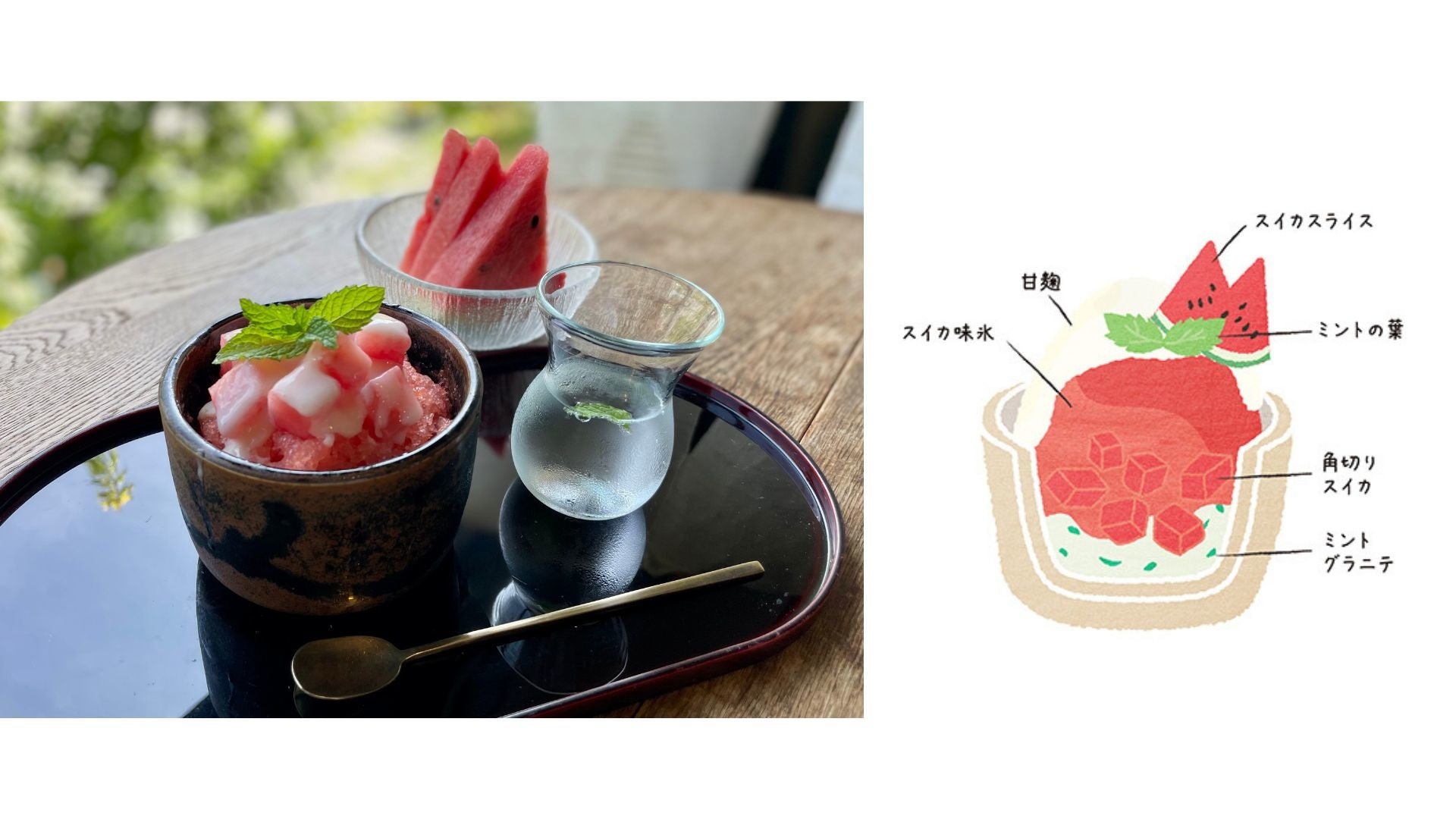 「桃と赤紫蘇のかき氷」と「西瓜とミントのかき氷」の2種類。