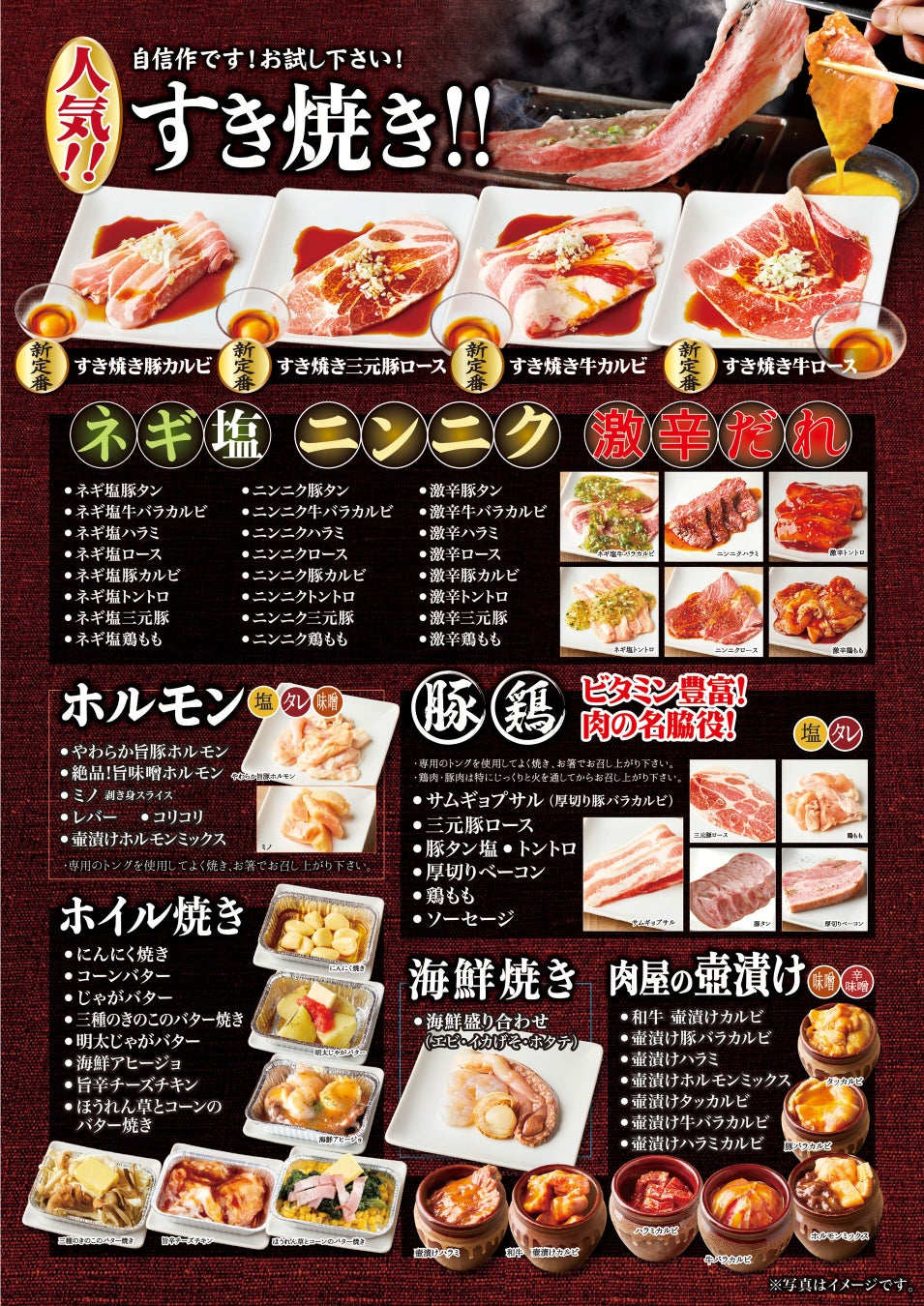 ☆定番品からA4,A5ランク和牛各種、ステーキ&すき焼き、壺漬け、豚、鶏、ホルモンも食べ放題!!