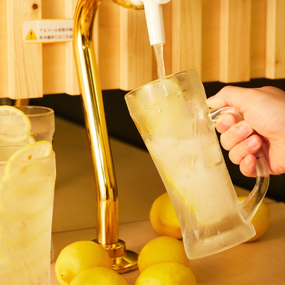 自分で注いで楽しめる「勝手にレモンサワー飲み放題」は、飲み放題付き宴会コースでもお楽しみいただけます。
