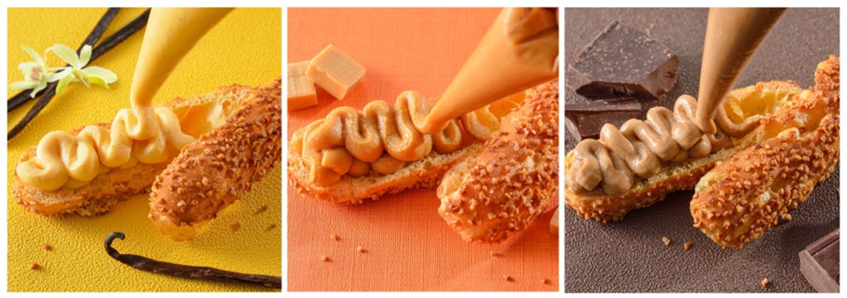 ※クリームは左から「カスタード」「キャラメル」「チョコレート」の3種類の取り扱いとなります。