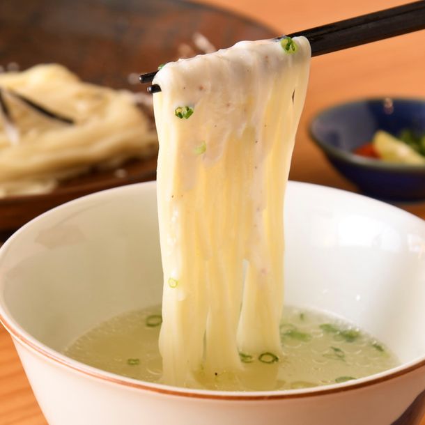 じっくりと焼き上げたとらふぐの白子と、ボイルしたとらふぐ白子をブレンドし、濃縮したしらこソースに仕上げました。希少なとらふぐ白子のクリーミーな味わいがふぐ鶏スープの旨味を含んだ麺にねっとり絡む新たな感動をぜひお楽しみください。
