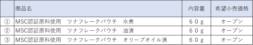 ツナフレークパウチ1Pは、MSC認証を取得したキハダマグロ原料を使用し、ツナ缶に比べて軽くて場所を取らず、ごみも少ないので手軽に使えます。