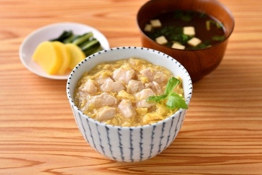 糖質50%off(※)、1食(200g)あたりの糖質量を5.0gに抑えた鶏肉とふっくら玉子の親子丼。卵のふわふわ感とだしにこだわり、かつおの風味豊かなつゆで仕上げました。環境配慮への一環として、外箱を無くしたスタンディングアルミパウチに変更。