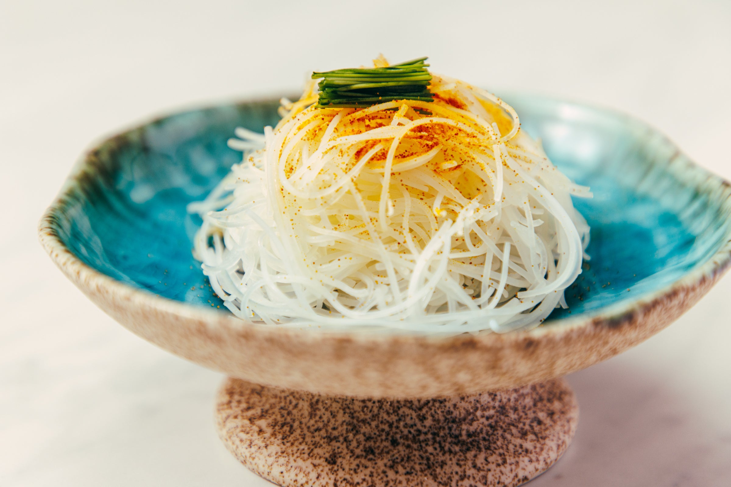 手間暇を惜しまず厳選した素材で仕込んだ自家製の“鯛出汁”ビーフンに、たっぷりの“カラスミ”をあしらいました。濃厚な海鮮の旨みを引き立てる高貴な香りが食欲をそそる前菜です。