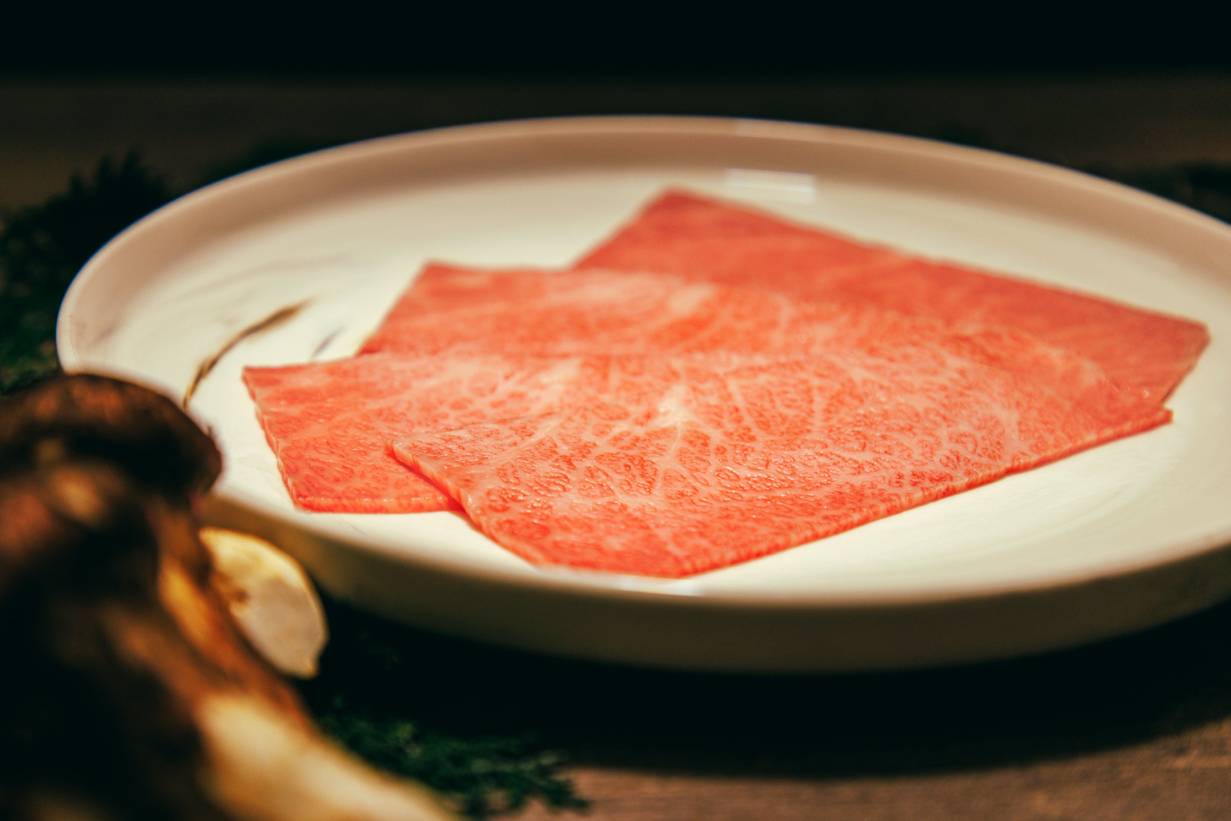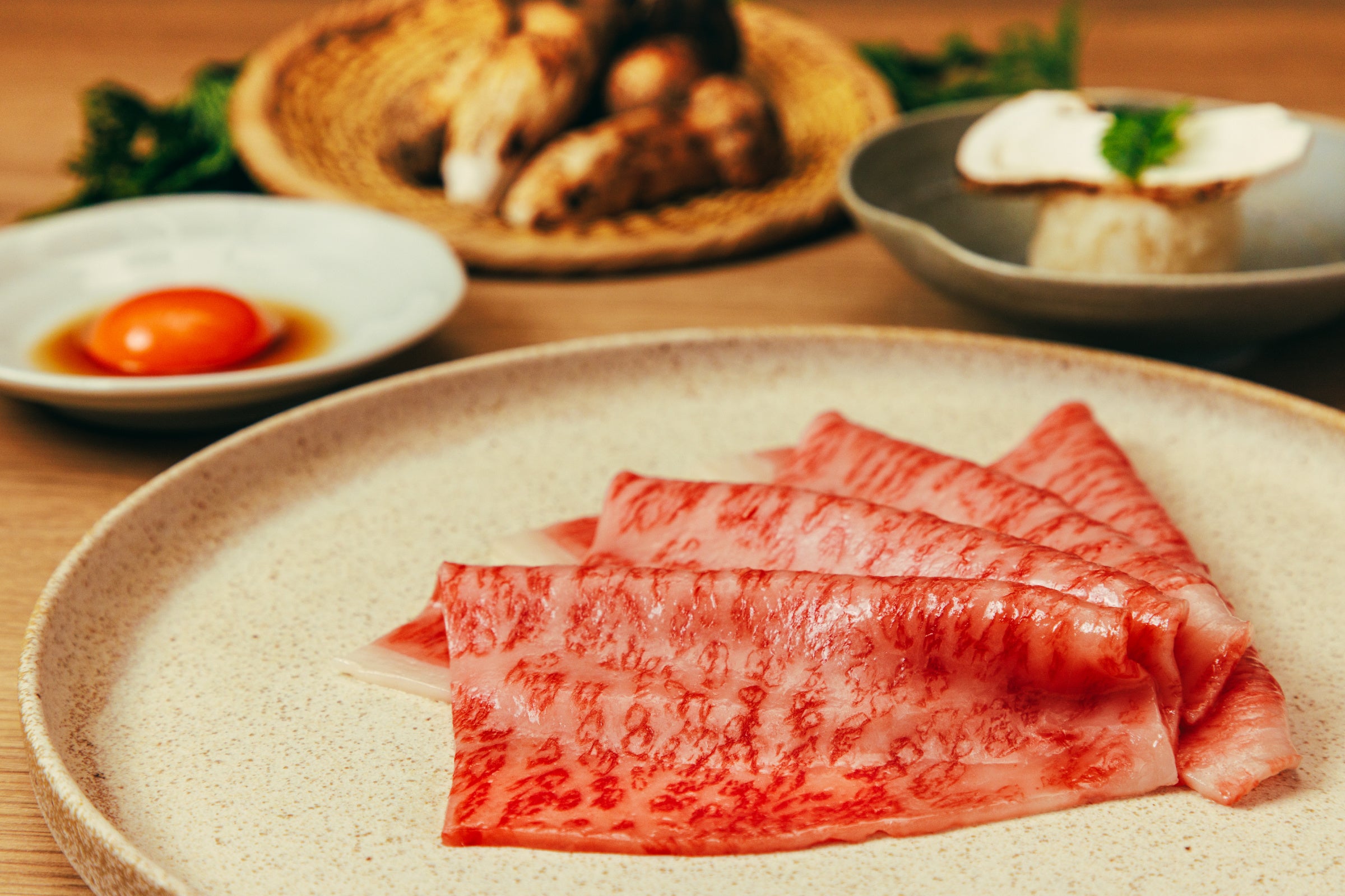 秋味覚の王様“松茸”と極上部位“ザブトン”をすき焼きにしました。華やかな香りと瑞々しい食感の新鮮な松茸を甘みの強いとろける“ザブトン”で包んでご賞味ください。贅を尽くした逸品です。