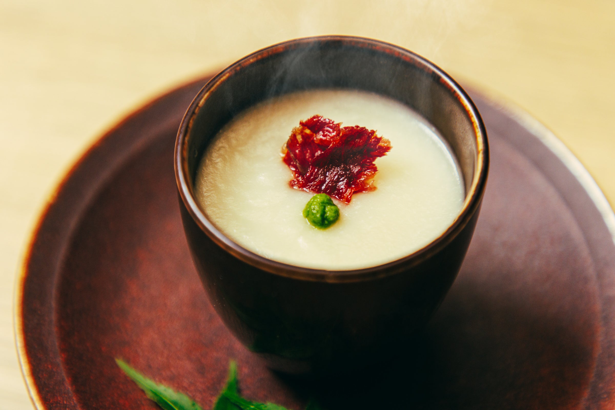 なめらかな蕪のペーストに濃厚コムタンとテールスープを合わせて、アクセントにビーフジャーキーを添えました。コク深い2種のスープと蕪の甘みが渾然一体となった、貫特製の「すり流し」をご賞味ください。