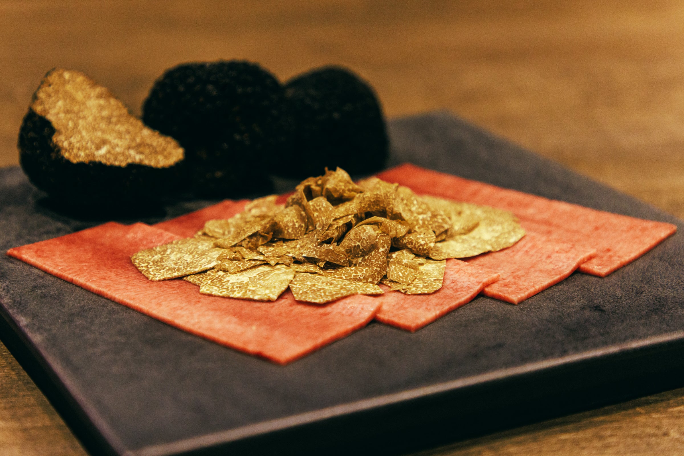 厳選した極上タンの薄切りで世界三大珍味のひとつ“トリュフ”を包んでお召し上がりください。艶のある舌触りと心地良い歯切れ、芳醇なトリュフの香りをご堪能いただけます。