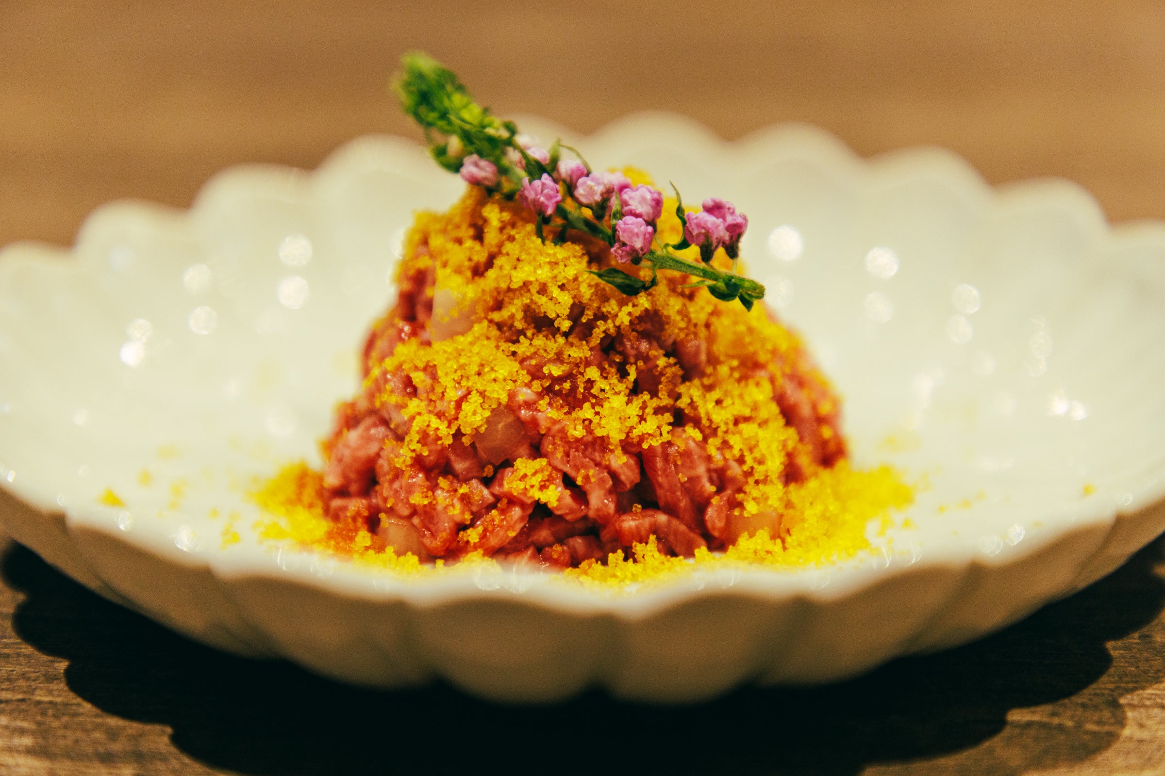 - からすみと辛味大根のタルタル 1,800円 【焼肉うしごろ】