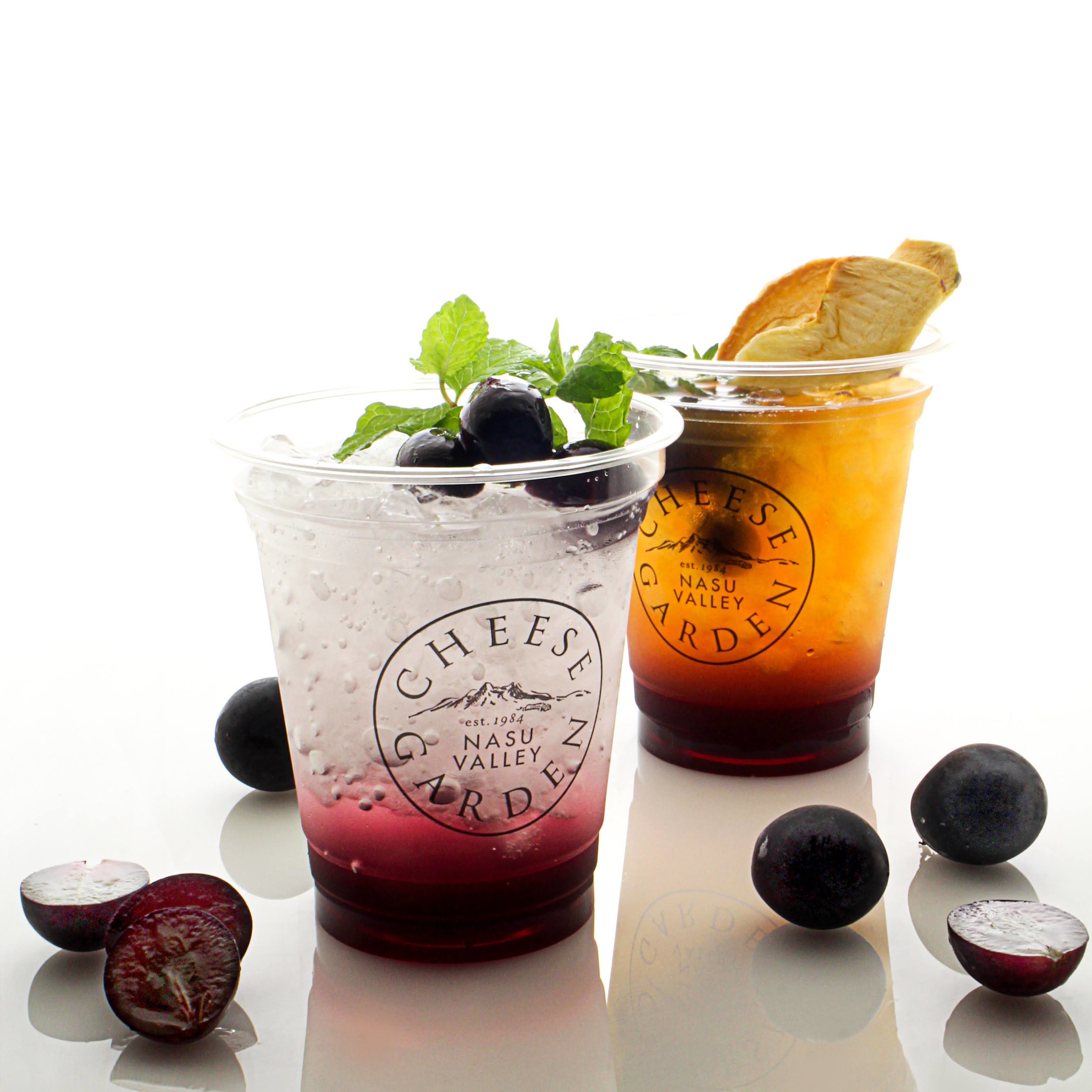 自家製ぶどうシロップを使用した爽やかなドリンク2種類を期間限定で販売します。『自家製シロップのぶどうフルーツティー』はチーズガーデンオリジナルブレンドティー・TESSAの人気フレーバー「御用邸」に、各店で仕込んだ手作りのシロップをあわせました。アールグレイベースであと味がすっきりとした紅茶に、ぶどうの芳醇な香り広がる甘めのシロップを混ぜることで、残暑がのこる時期でも爽やかにお召し上がりいただけます。また、『自家製シロップのぶどうスカッシュ』は、各店で仕込んだ手作りシロップにソーダをあわせ、ぶどうの果肉も入れることでフレッシュ感もお楽しみいただけるオリジナル炭酸ドリンクです。