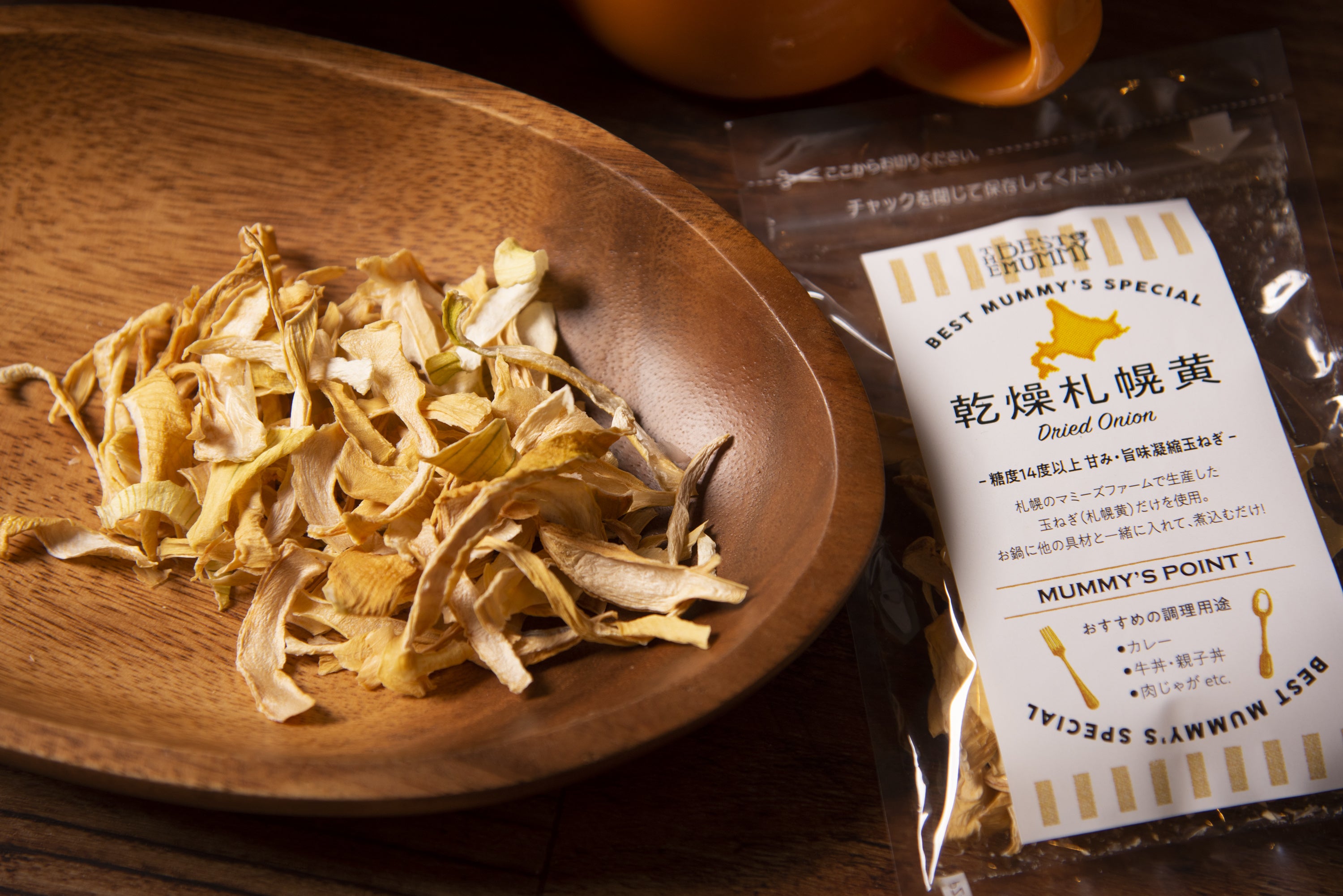 “幻の玉ねぎ”「札幌黄」をじっくり低温で乾燥させ、旨みを引き出した「乾燥札幌黄」。パンと一緒に噛みしめる事で最大限に「札幌黄」の旨みを感じて頂けると思います。ブール アンジュ様とのコラボで更に「札幌黄」の良さを引き出して頂き、光栄です。自信を持ってお届けします!