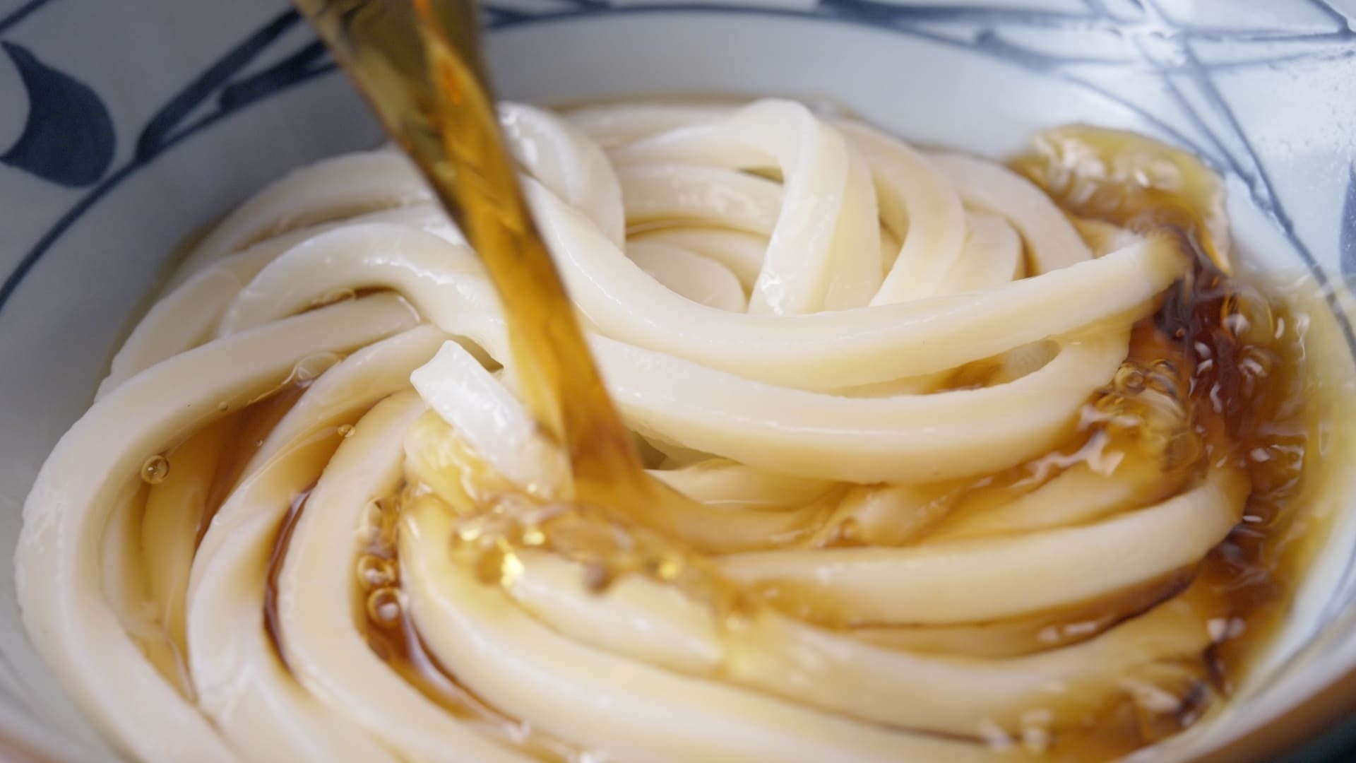 「おいしいうどん」は、徹底的に鮮度にこだわりぬいた「生きている」状態で提供されて初めて実現できる、と丸亀製麺は信じています。丸亀製麺がお届けするうどんは、国内 800 を超えるすべての店で一軒、一軒、手間を惜しまず、毎日、100%国産の小麦粉から打っています。打ち立てのうどんにこだわり、その場で切って、茹でて、作りたてをお客さまに提供しているからこそ、もちもちでおいしい独自の“丸亀食感”をお届けできています。