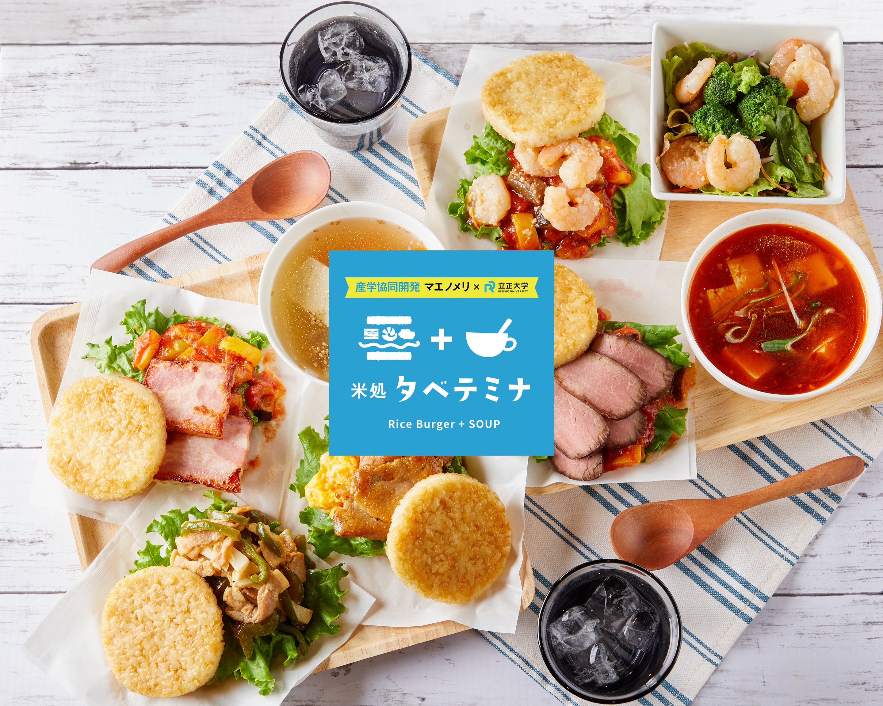 学生に夢を届けたい、コロナに負けず美味しいものを食べて沢山の交流をして欲しい。そんな想いから創られたブランドです!ライスバーガーとスープはお好みで組み合わせの注文が可能!まずはそのまま、最後はライスバーガーをスープに入れて…タベテミナ!