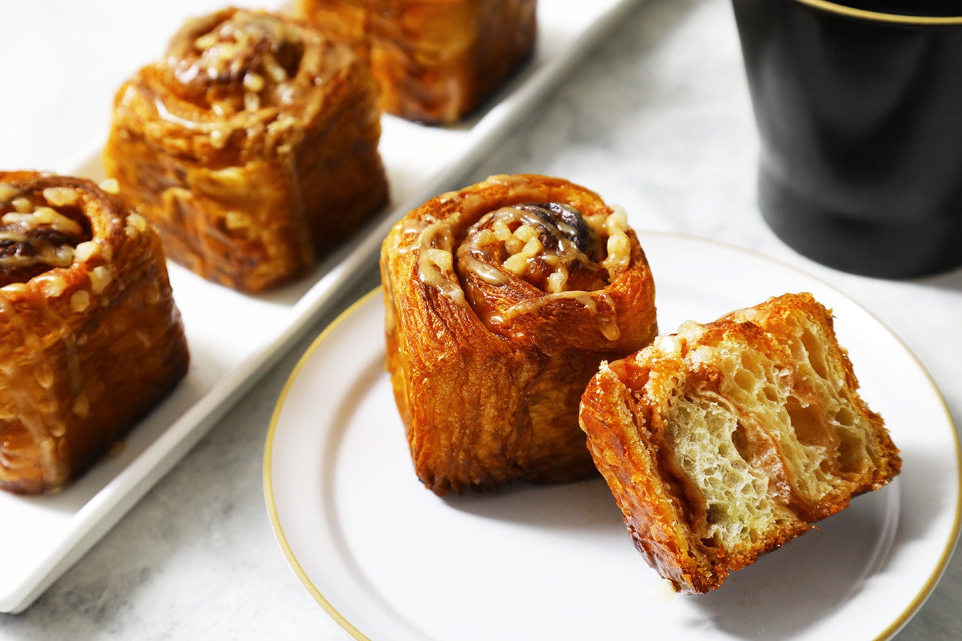 本場スウェーデン風のシナモンロールが新登場。キューブ型の見た目もさることながら、シナモンロールには珍しい、パールシュガーで仕上げたカリカリザクザク食感が特徴です。