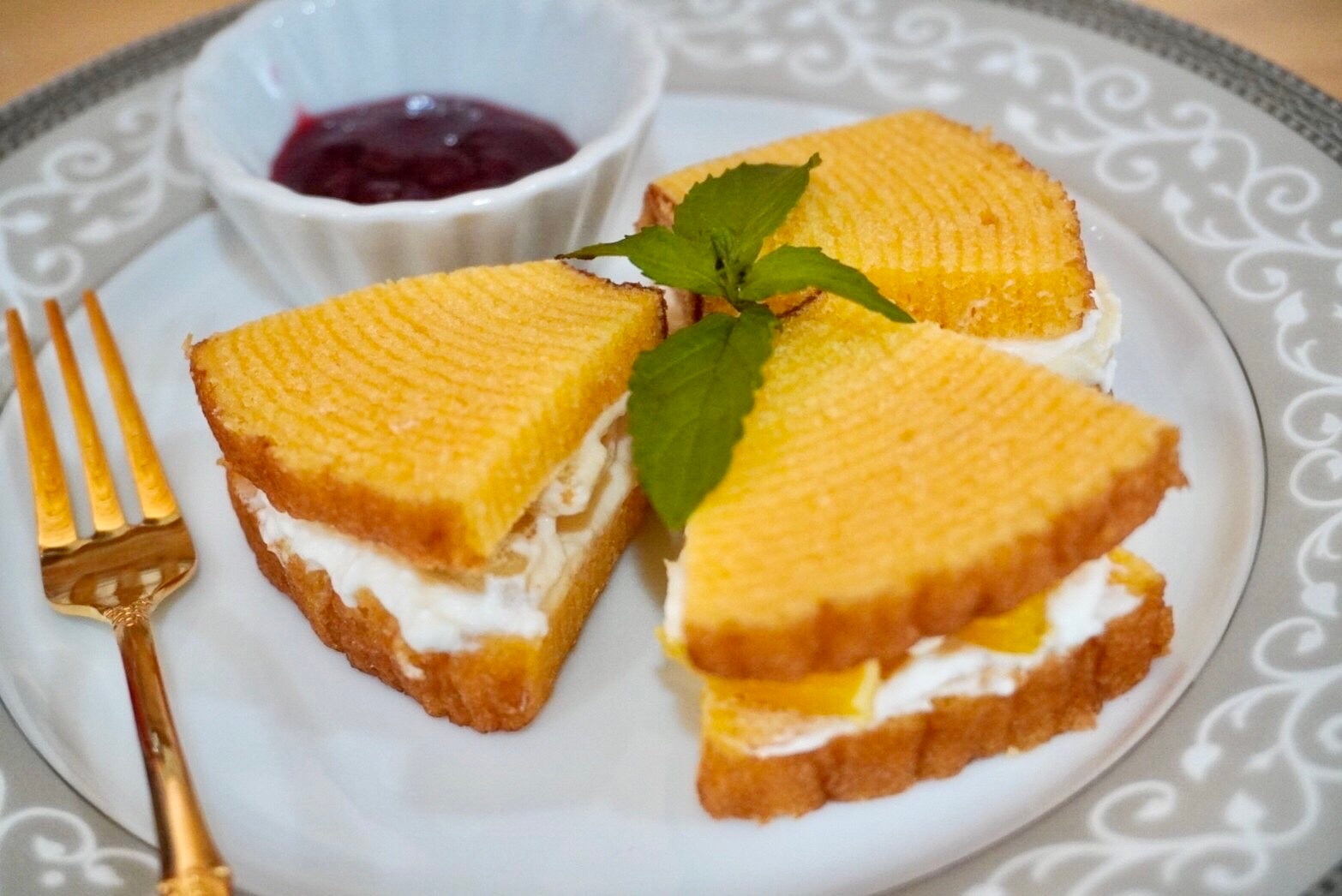 知っていましたか?バウムハウス樹凛がある栃木県は、いちご、メロン、巨峰などさまざまなフルーツが栽培されることから、フルーツ王国と呼ばれています。そんな私たちが提案するのは、昔懐かしいフルーツサンド。穂乃香をスライスして生クリームをたっぷり塗ったら、お好みのフルーツを置いていくだけ。栃木のフルーツを使うのがおすすめです。果汁溢れるフルーツとバウムクーヘンのマリアージュを、好きなだけ楽しんでくださいね。(使用バウムクーヘン:穂乃香)