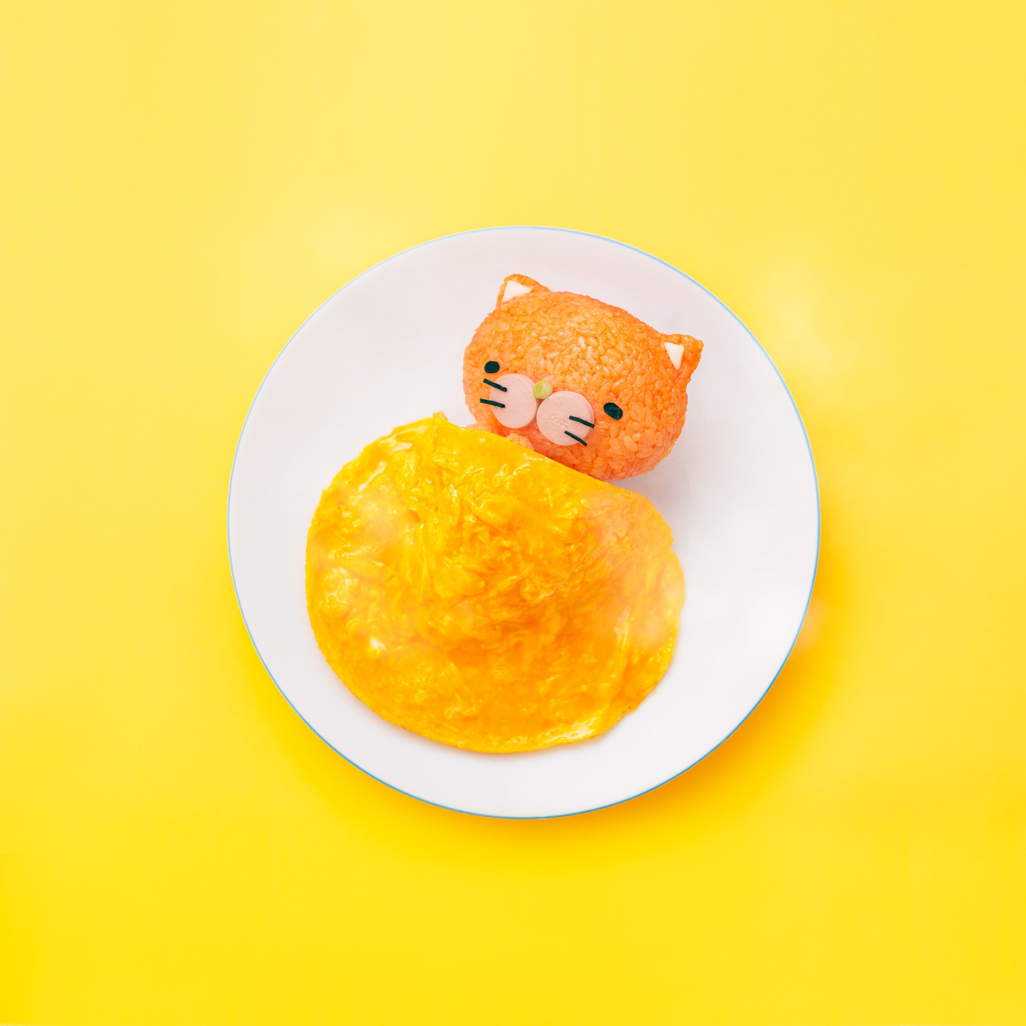 寝冷えネコ目、寝冷えネコ科のケチャップライスでできたネコ。