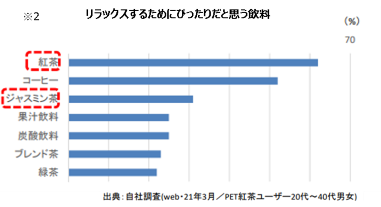 そうした中、リラックスにぴったりな飲料として、 香りのよいお茶類が好まれる傾向があります。※²