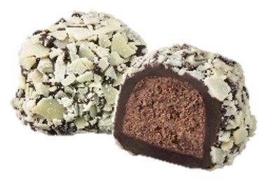 ダークチョコレートアーモンドガナッシュを アーモンドプラリネとミルク&ダークチョコレートで包みました。アーモンドフレークを飾り、 アーモンドづくしの香ばしいひと粒です。