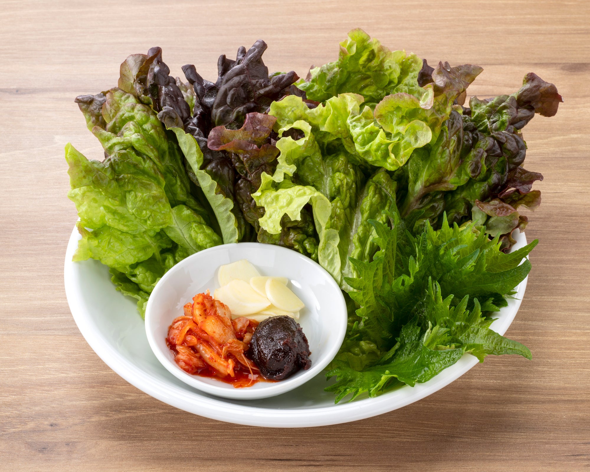 サンチュ・大葉・キムチ・ニンニクスライスがセットに