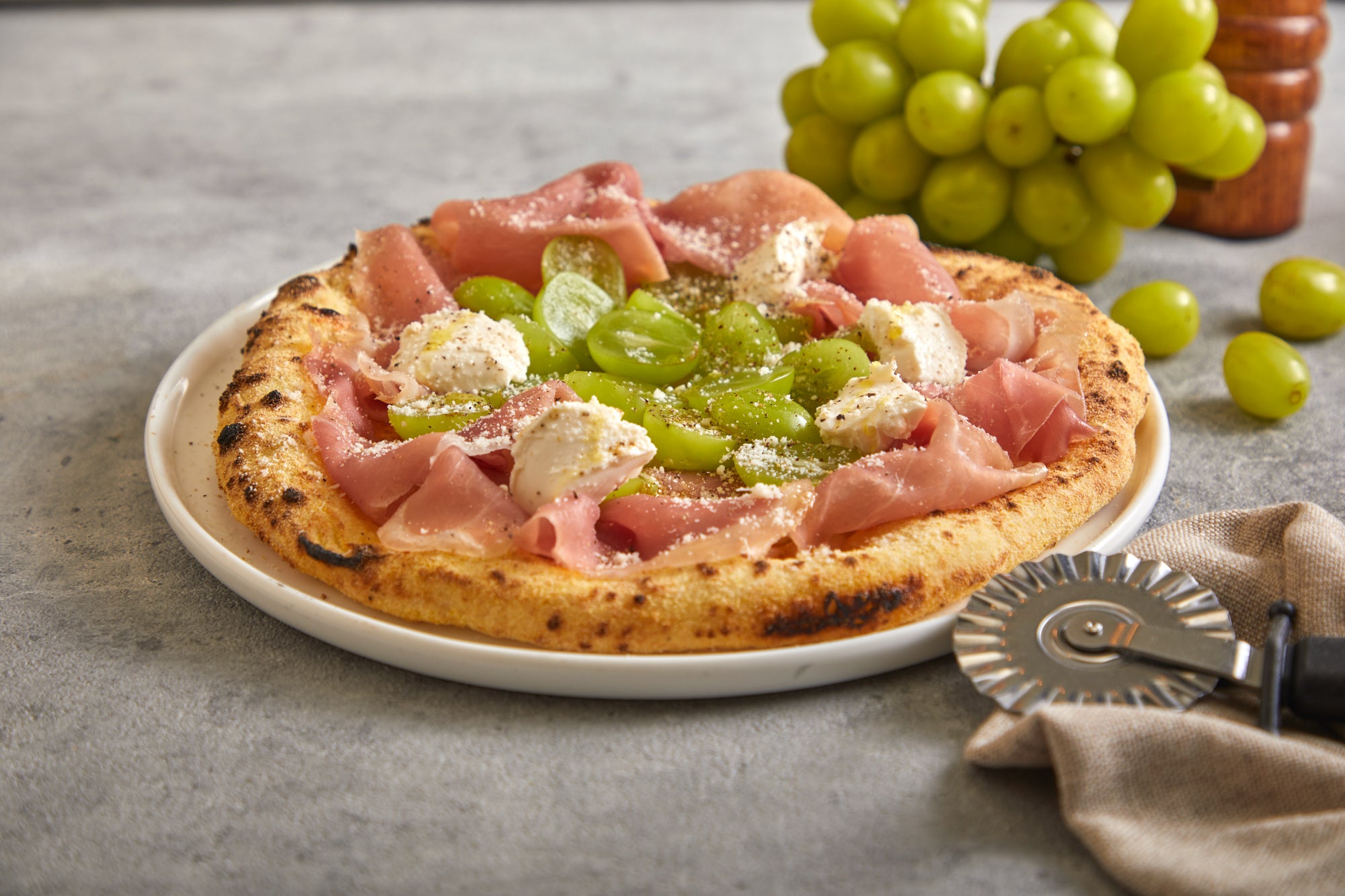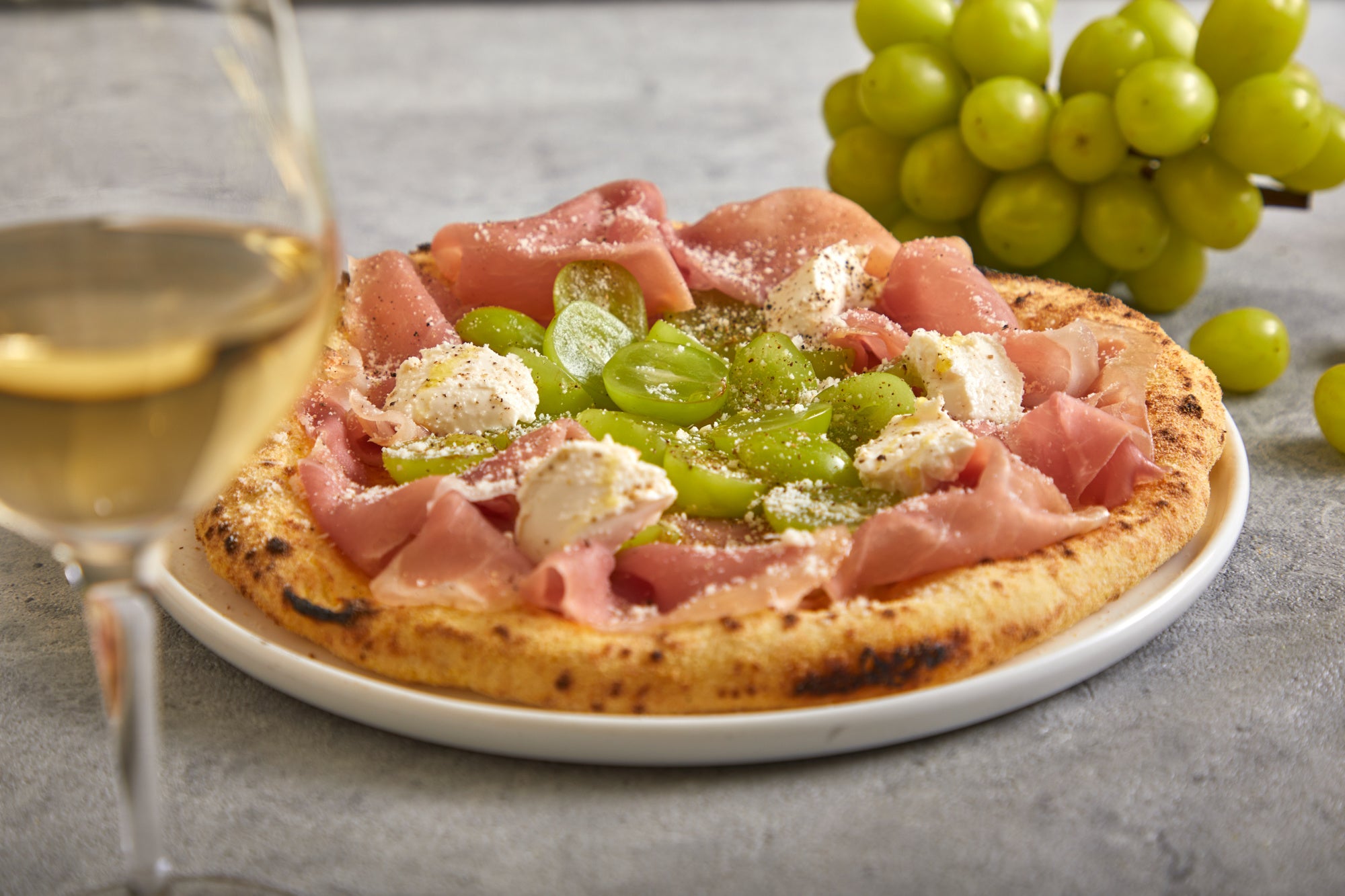 旬のシャインマスカットに贅沢に生ハムをトッピング。夏を感じていただける一品に仕上げました。
