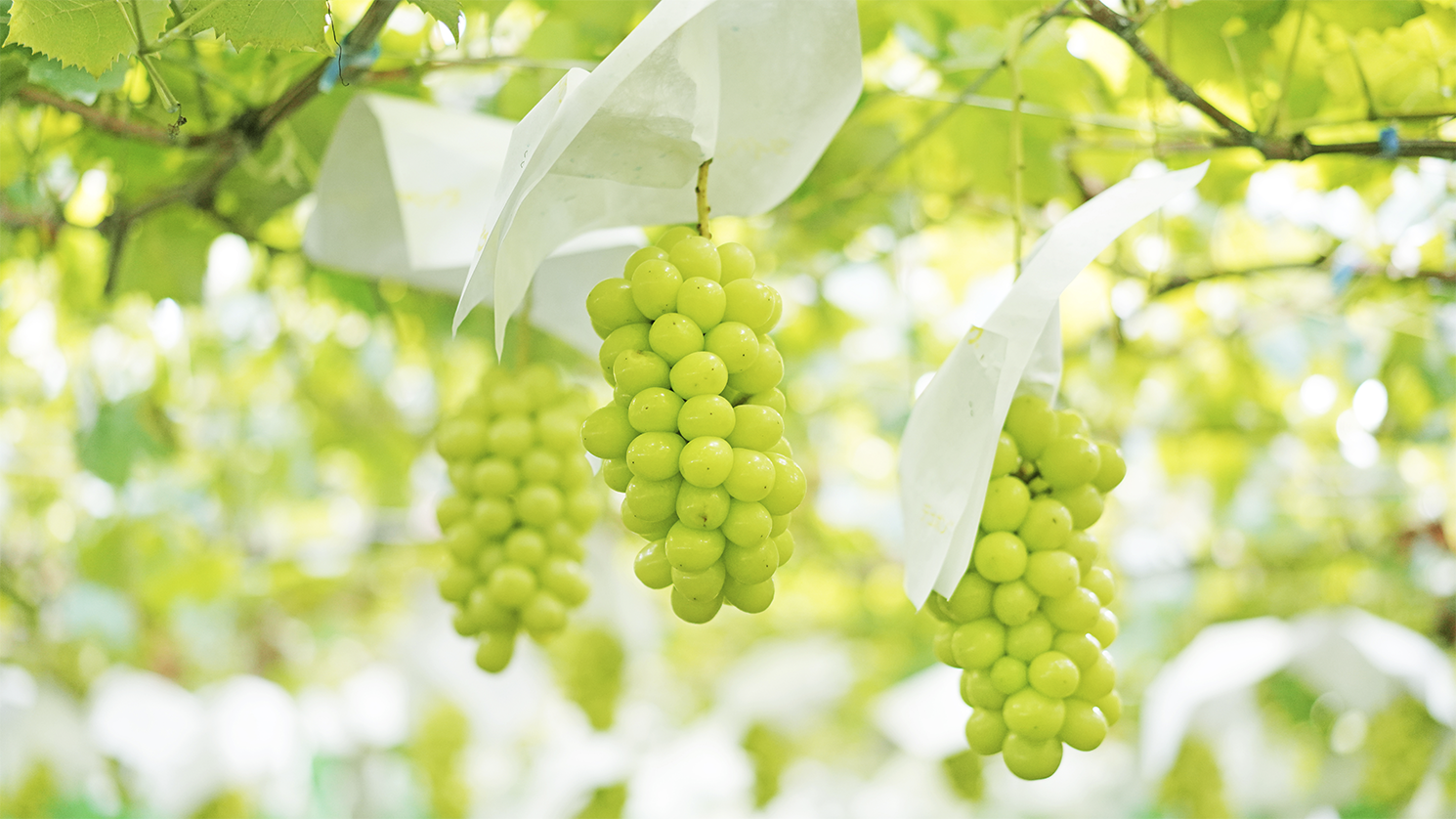 ・平成15年に品種登録されたシャインマスカットは、国の農研機構果樹研究所により10年を超える研究期間を経て開発されました。