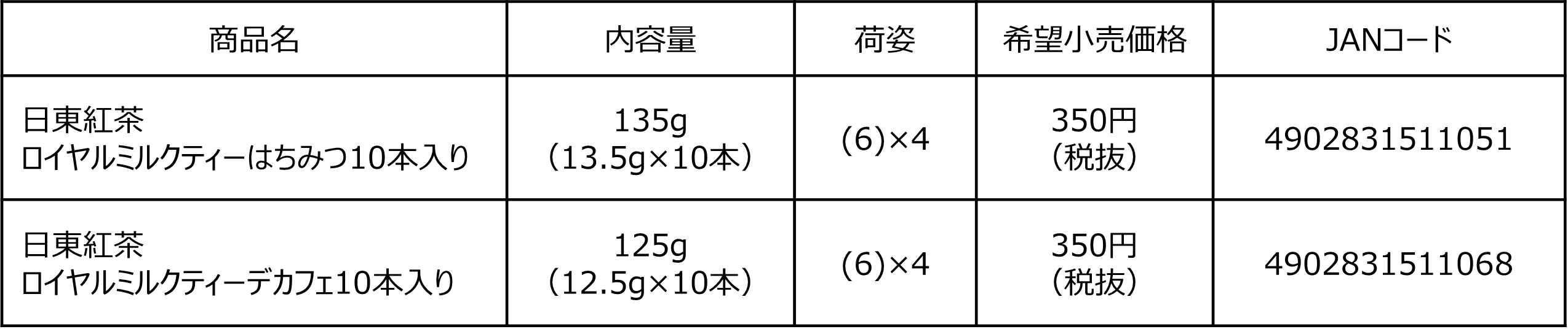 三井農林株式会社(所在地:東京都港区、代表取締役社長:佐伯 光則)では、「日東紅茶 ロイヤルミルクティーはちみつ10本入り」「日東紅茶 ロイヤルミルクティーデカフェ10本入り」を2022年8月29日(月)より新発売いたします。